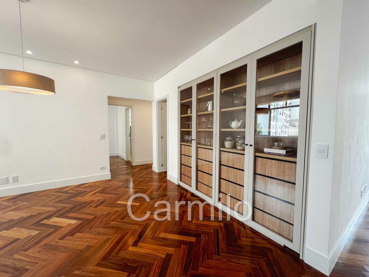 Localizado no coração de Higienópolis; prédio com portaria 24 horas, muito seguro. Lazer com piscina em raia, fechada e aquecida; sauna e academia. Hall de entrada com piso em mármore crema marfil; Living para três ambientes, com piso em tacos de madeira; ampla sacada; lavabo; cozinha e copa amplas, repletas de armários embutidos; cozinha com ilha; área de serviço espaçosa e iluminada; dormitório de serviço; quatro dormitórios com suíte, todos com armários embutidos, piso em laminado de madeira, sacada e ar condicionado; suíte master com closet e ampla jacuzzi.